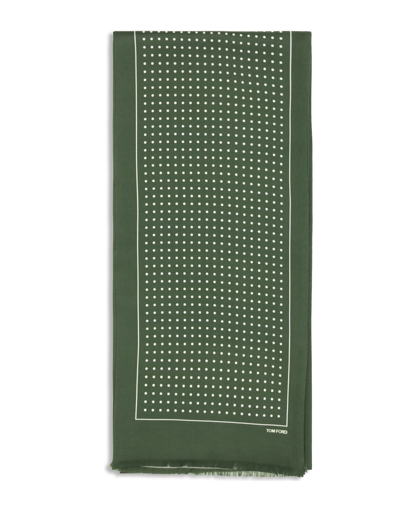 The polka dot scarf by tom ford is made of silk and stands out for its rectangular shape and elegant design. finished with frayed edges, it is completed by the logo positioned at the bottom, adding a discreet and refined detail to the model. Composition: 100% % Silk