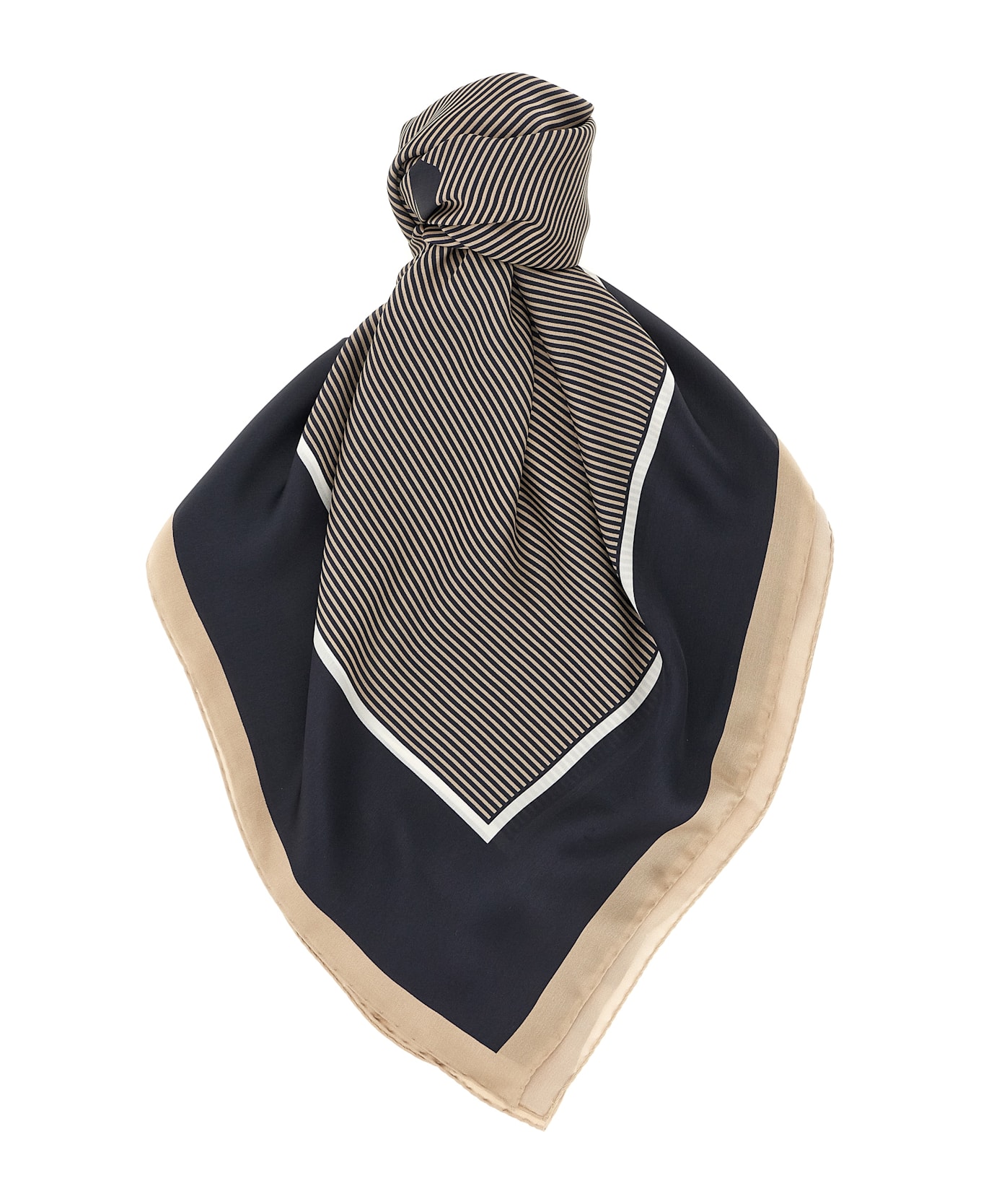 Striped semi-transparent silk charmeuse scarf with central 'Cassandre' logo. Composition: 100% silk