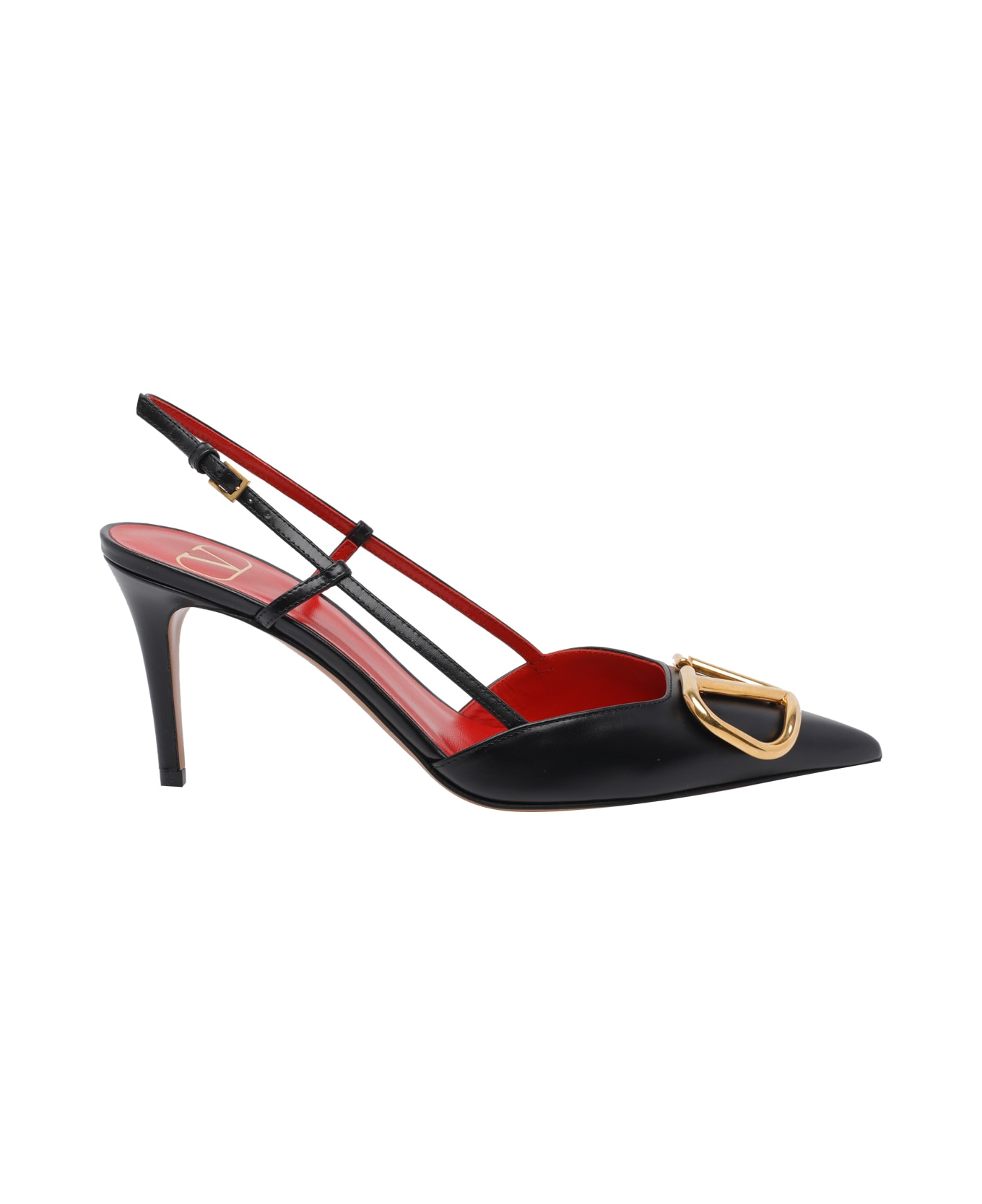 Valentino Garavani black Vlogo Signature decollete' slingback, lateral buckle closure, frontal Vlogo, patent leather Composition: 100% Calf Leather/leather Sole