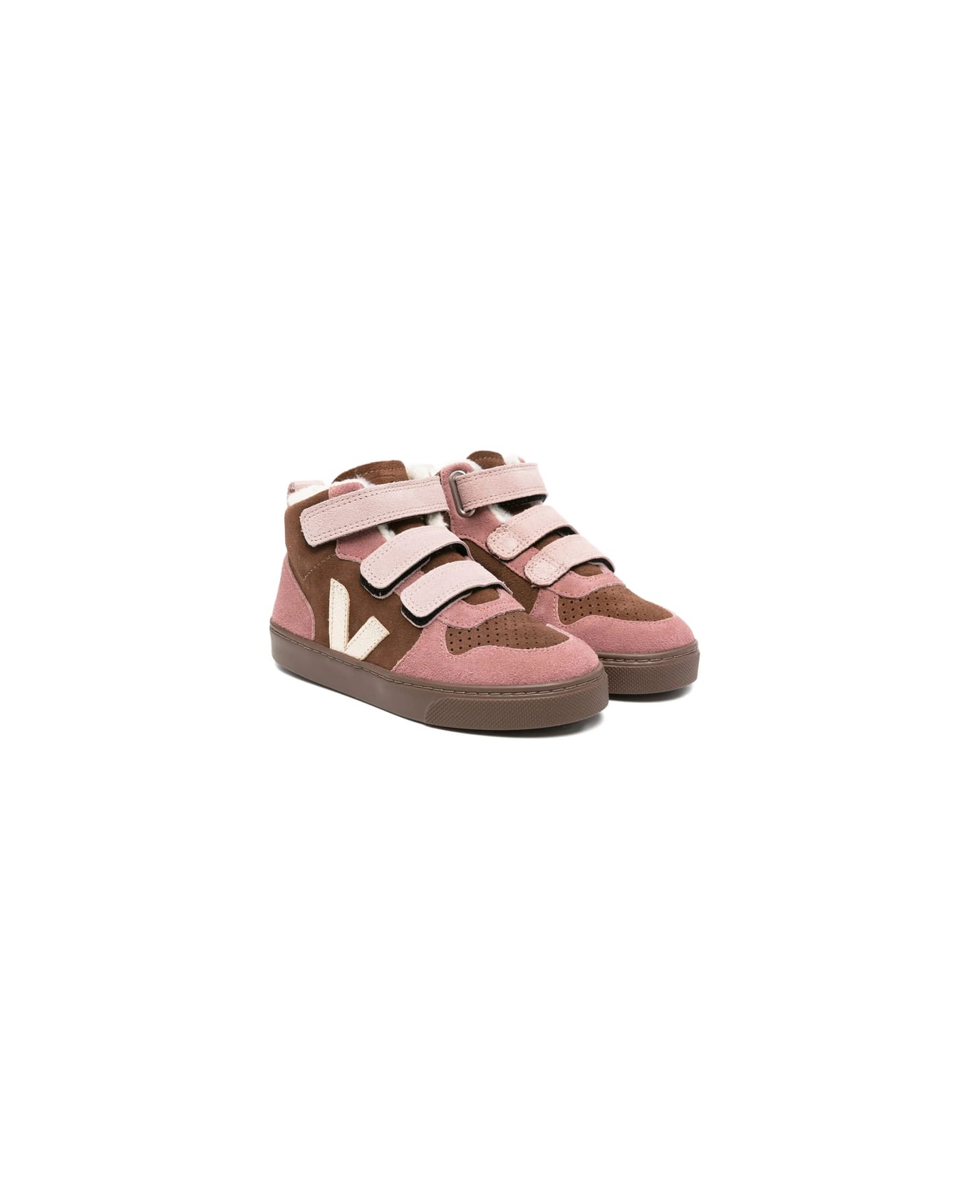 brown and pink suede upper touch-straps calf hair lining perforated detailing flat sole