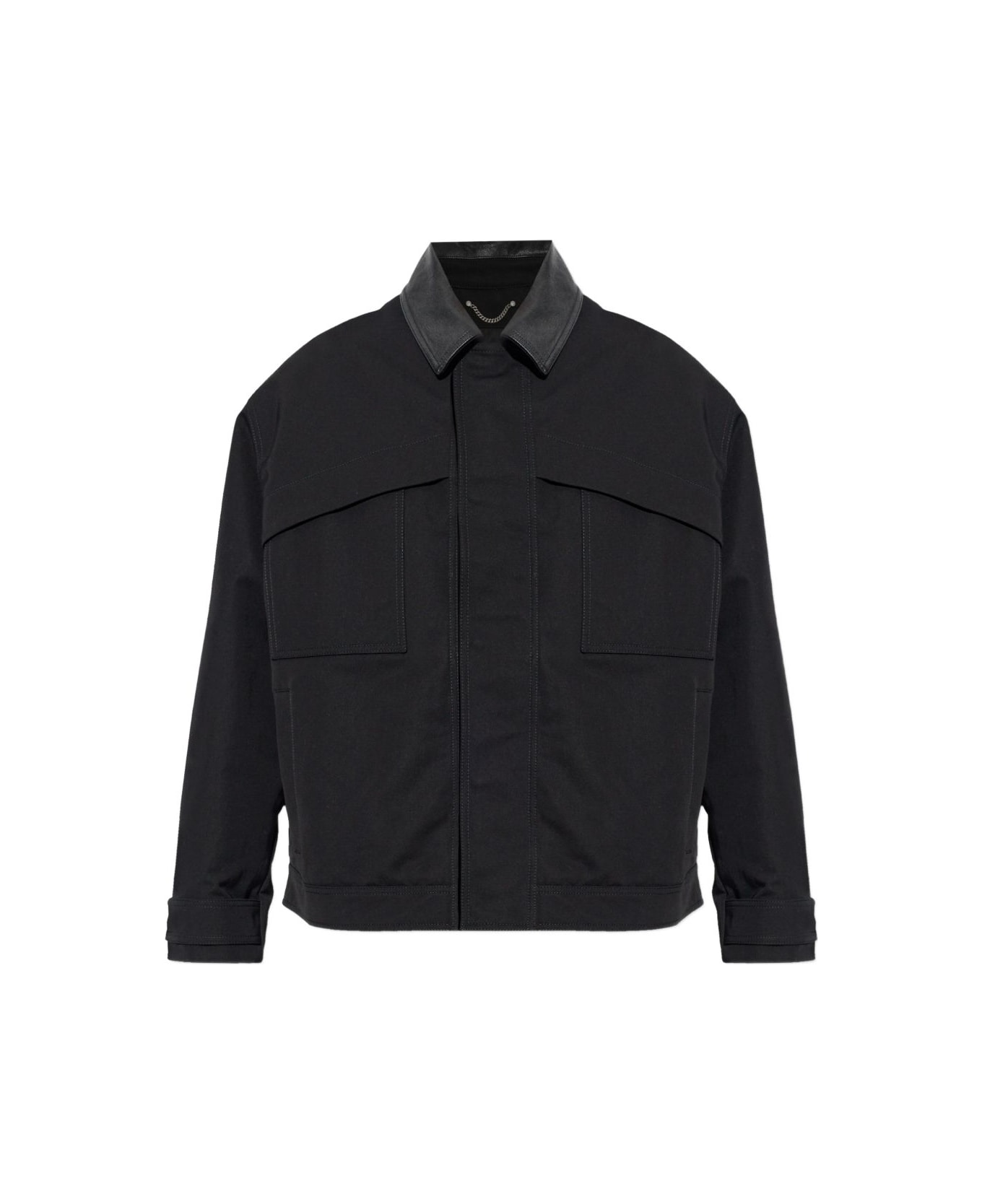black cotton leather collar front pockets silver-tone studs zip fastening
