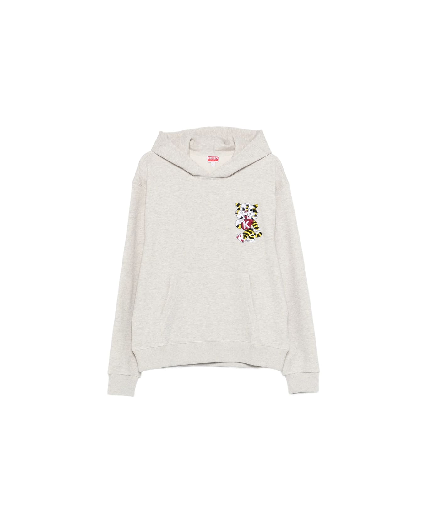 light grey tiger motif drawstring hood pouch pocket long sleeves ribbed hem