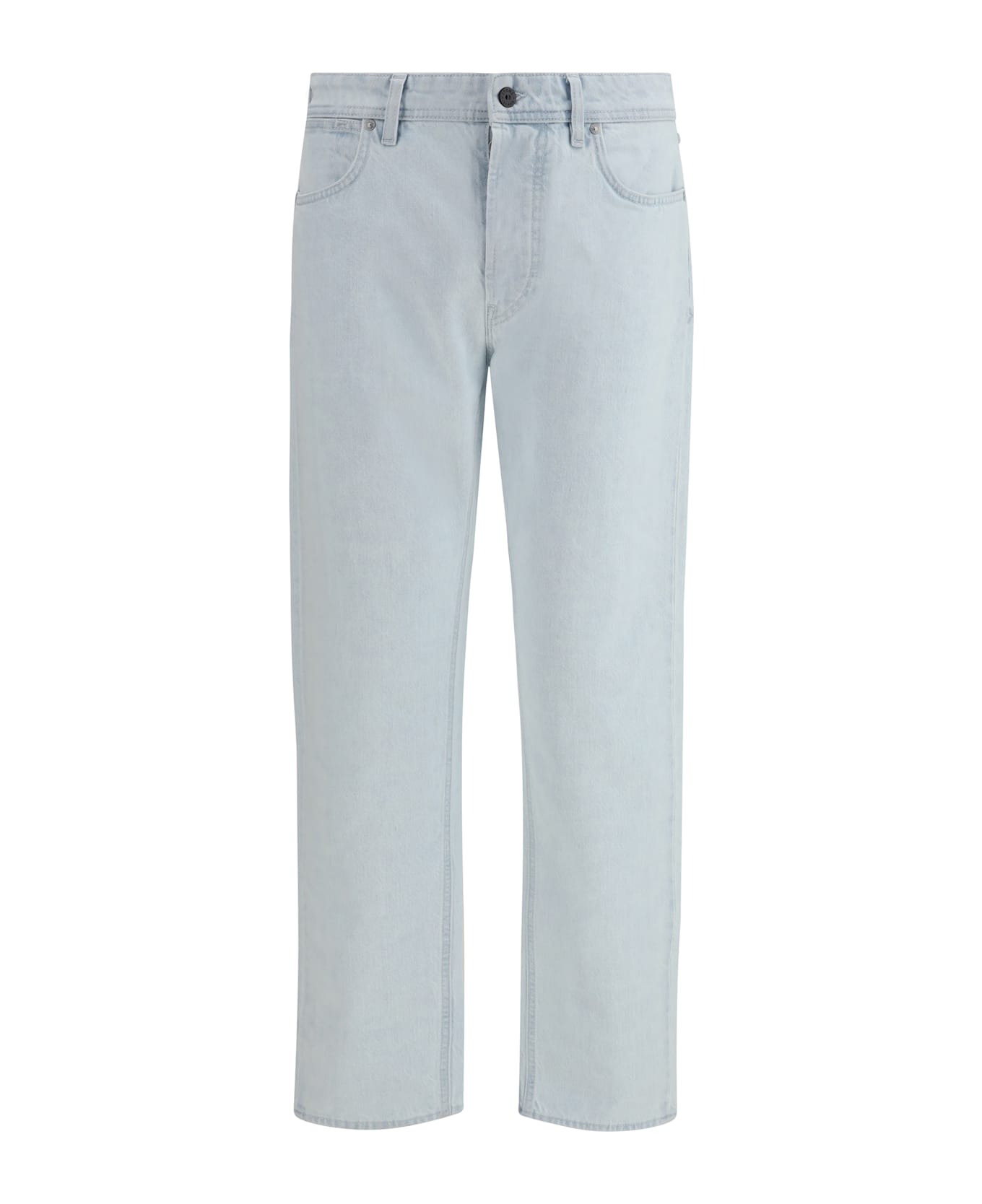 The cotton denim jeans by stone island deliver a clean and functional aesthetic with a versatile construction. featuring a front button and zip closure with belt loops at the waist, they follow a classic five-pocket design rooted in timeless denim codes. a regular fit with straight leg and straight hem creates a balanced silhouette, finished with a logo label applied at the back of the waist for a subtle and recognizable signature.