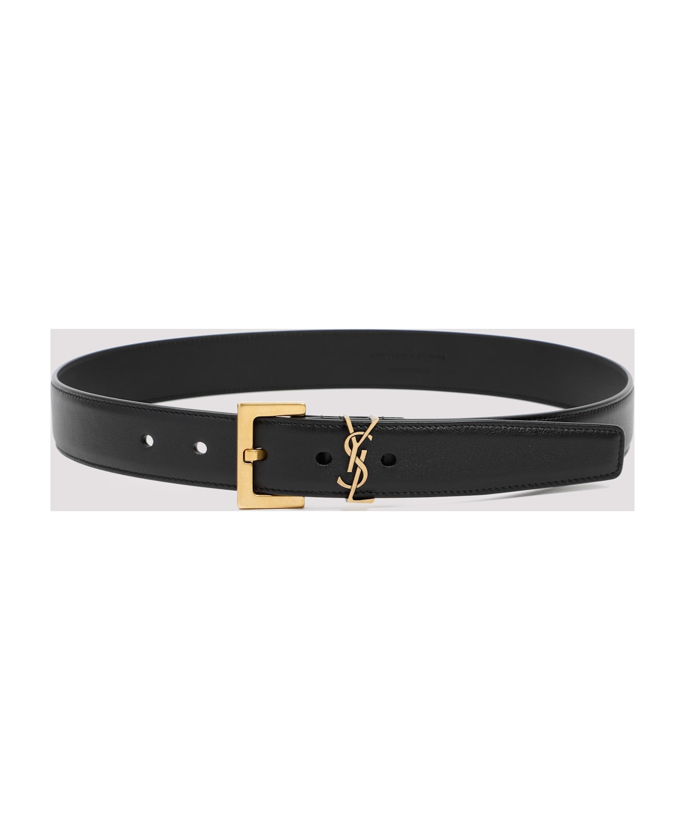Saint Laurent Black Leather Belt with YSL Monogram. Black leather, gold-toned metal hardware, adjustable buckle fastening, YSL logo Loop.