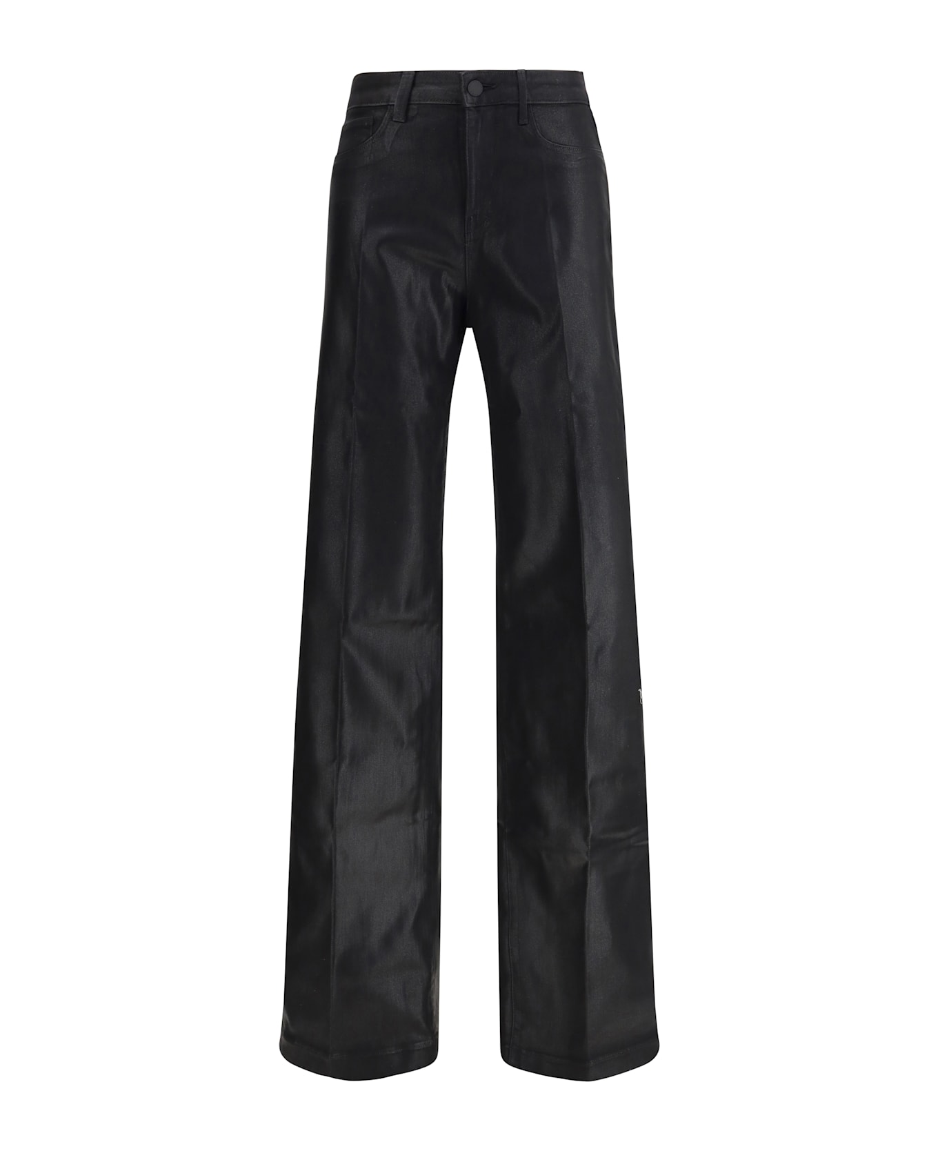 The clayton coated wide leg jeans by l'agence are made of stretch denim with a leather-effect finish for a modern, sophisticated look. the wide leg and high waist enhance the silhouette, while the mock front pockets and functional back pockets maintain a clean design. a zipper and button closure complete the style for a contemporary, punchy style.