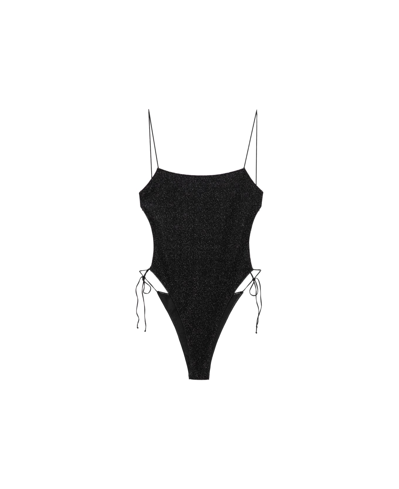 black side tie fastening glitter detail spaghetti straps low back cut-out detail Be mindful to try on swimwear over your own garments.