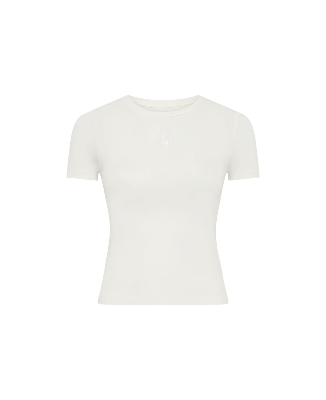 white round neck short sleeves logo patch baby fit