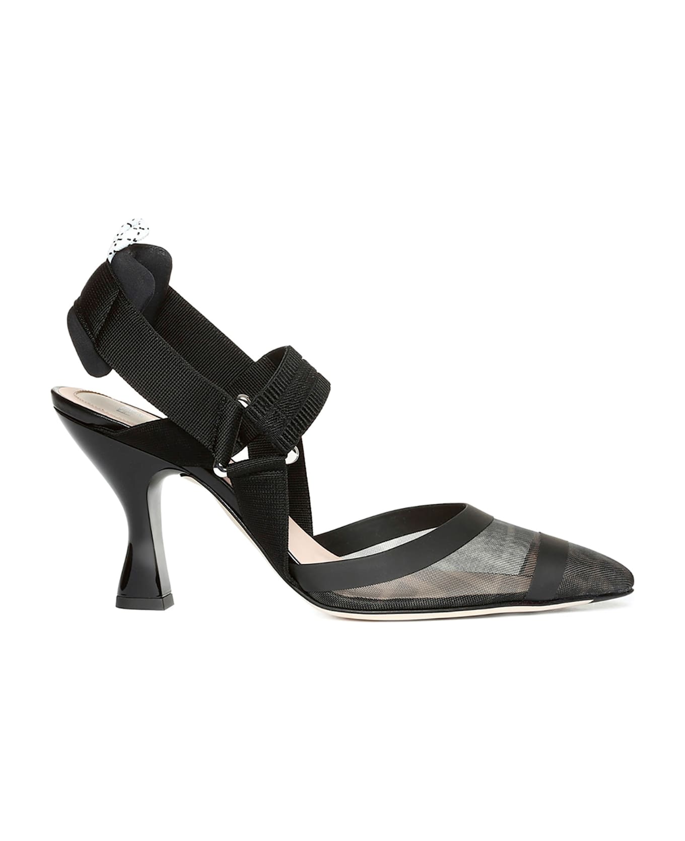 'Colibrì' mesh slingback with iconic FF motif, leather and grosgrain ribbon details, pointed toe, padded back strap with trekking hook, elastic upper strap, heel, leather sole. Composition: 80%pa 20% CALF leather