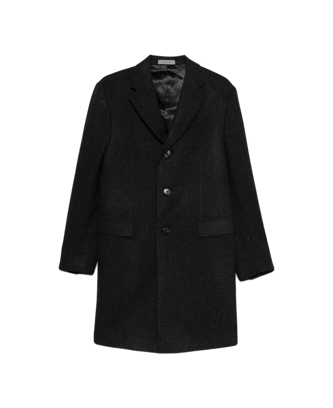 Corneliani Dark gray checked coat, button closure, peak lapels, flap pockets, long sleeves