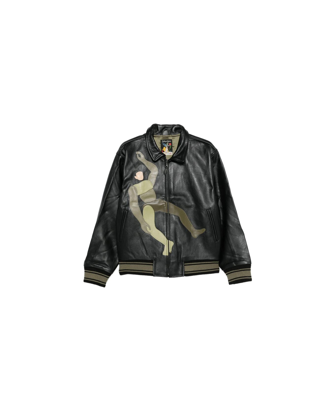 black calf leather ribbed hem ribbed cuffs front zip fastening point collar