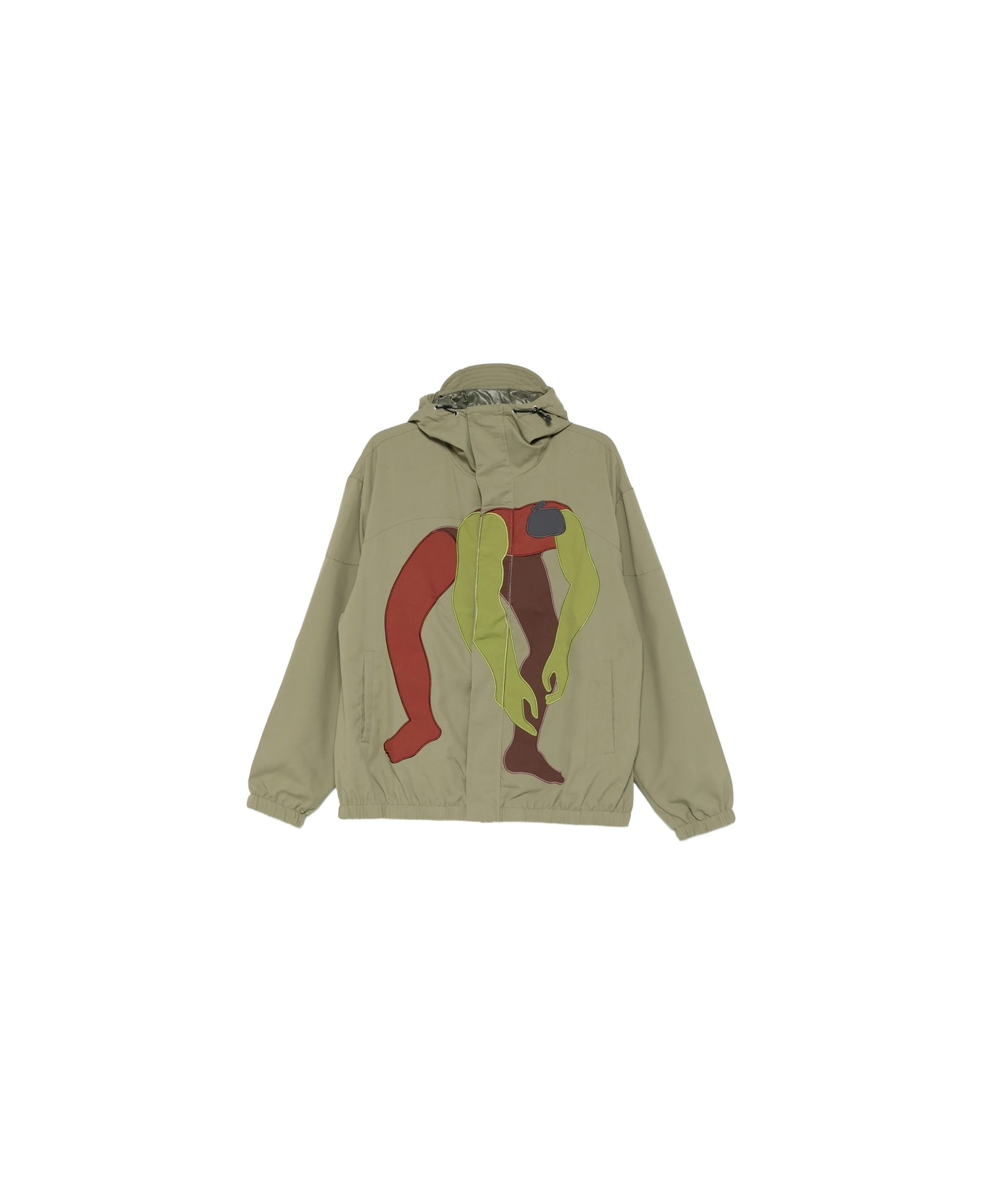 green graphic print drawstring hood elasticated hem side welt pockets long sleeves