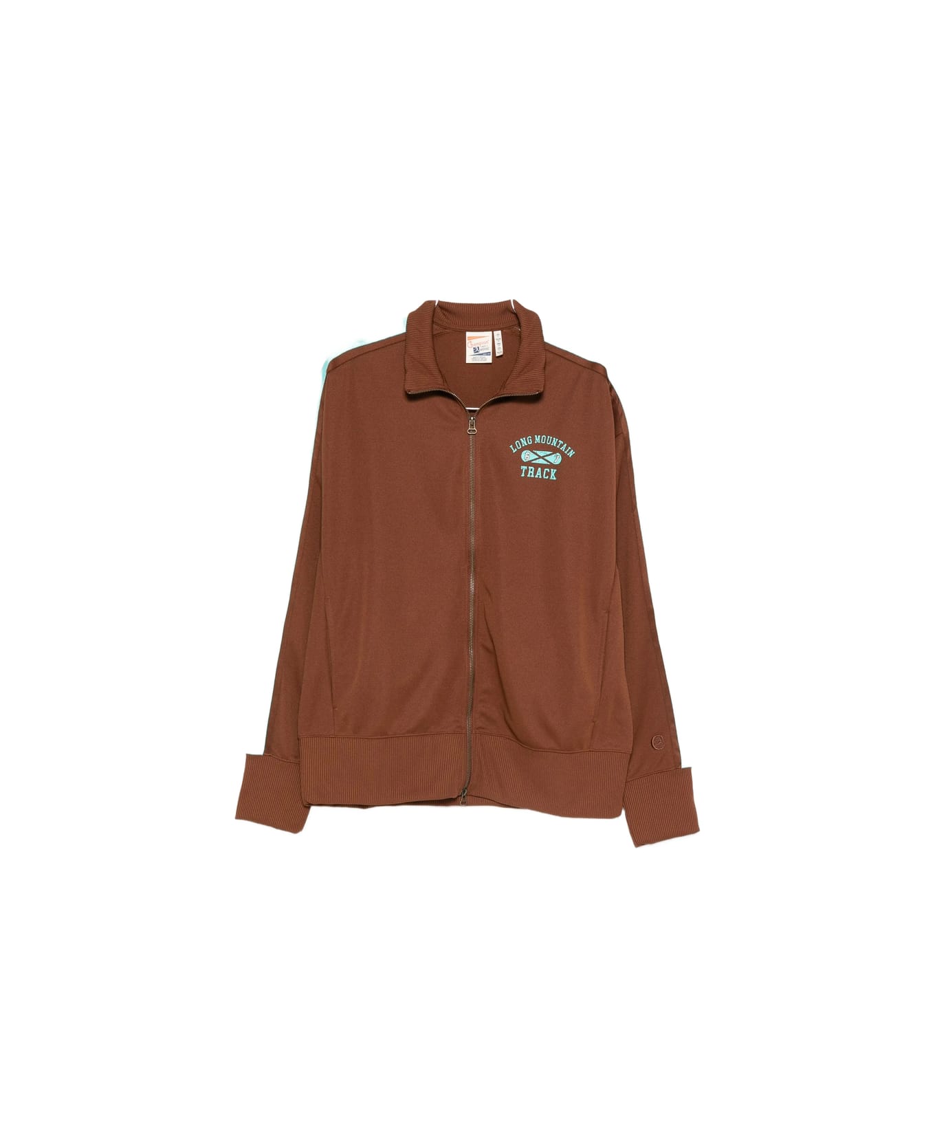 brown ribbed hem zip fastening striped sleeves ribbed cuffs stand collar