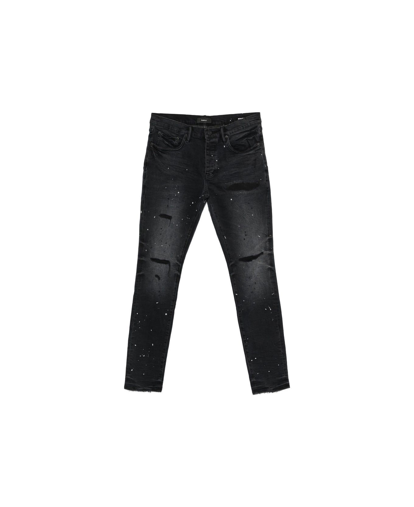 charcoal splatter detail distressed effect button fastening five pockets belt loops