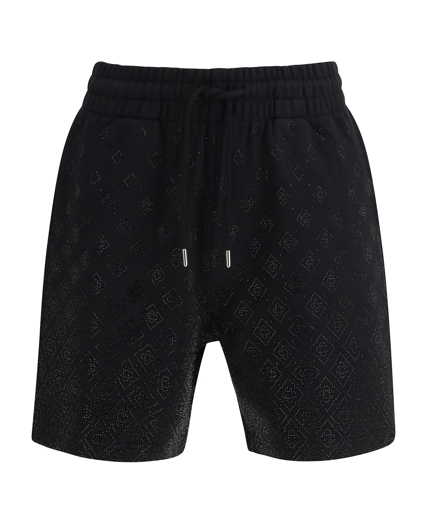 The shorts crafted from jersey and embellished with the house s dégradé monogram made from crystals, showcasing a refined and elevated aesthetic. they feature an elasticated waistband with a silver-tipped drawstring fastening, side pockets, and a back pocket. made from soft cotton, they ensure comfort and a sophisticated look.
