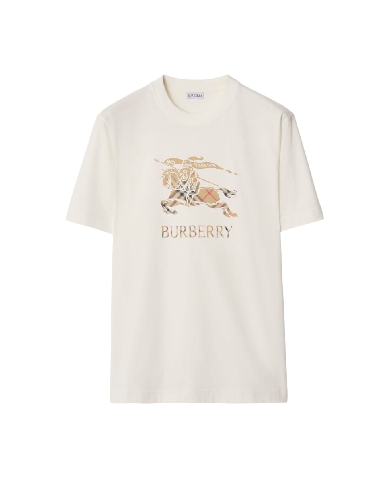 white logo print Equestrian Knight print check detail ribbed neckline Composition: 100% Cotton