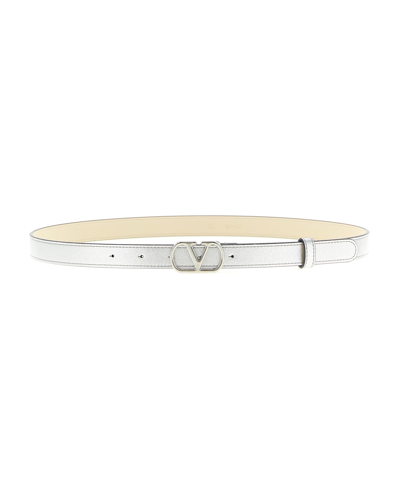 Adjustable metallic leather belt with signature 'VLogo' metal buckle. Composition: 100% calfskin leather (Bos Taurus)
