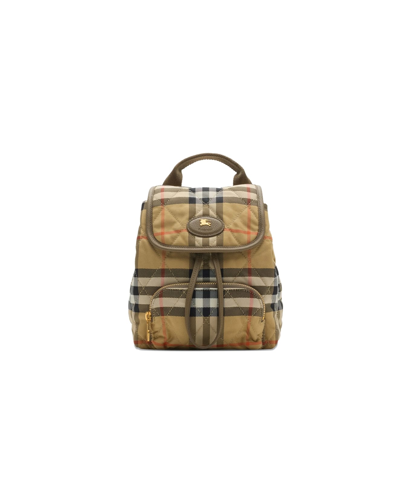 beige check pattern quilted leather trims top handle adjustable shoulder straps equestrian knight logo detail