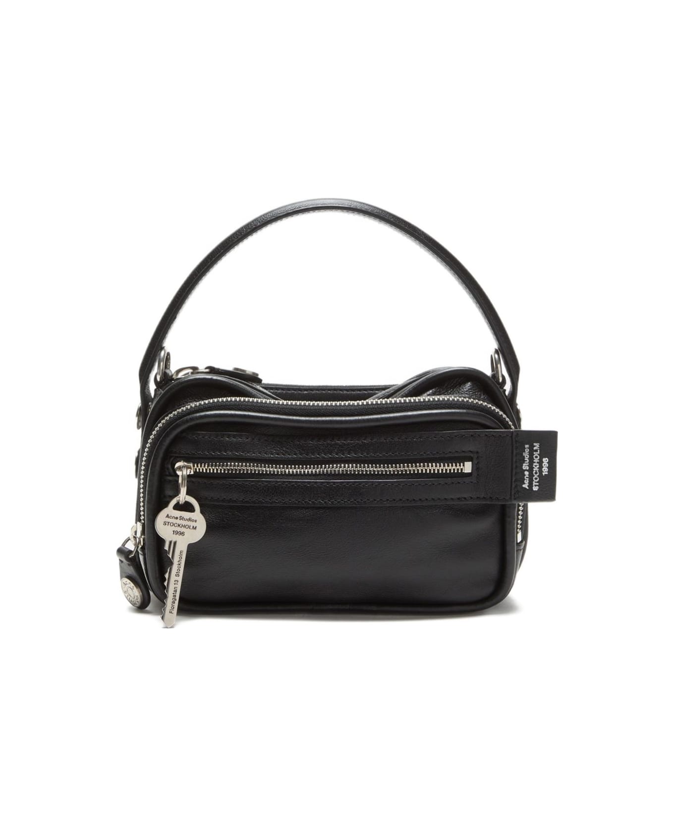 black single top handle detachable shoulder strap zip fastening silver-tone hardware key charm