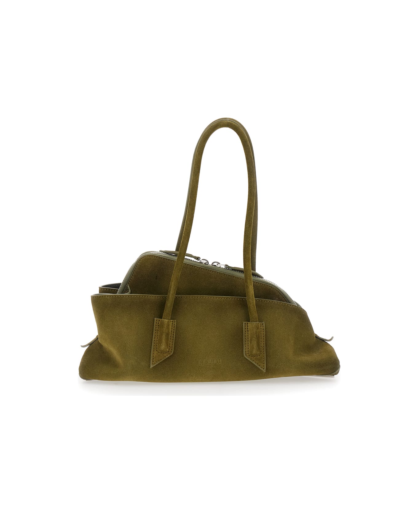 Green Shoulder Bag With Tubular Handles And Impressed Logo On The Front In Suede Woman