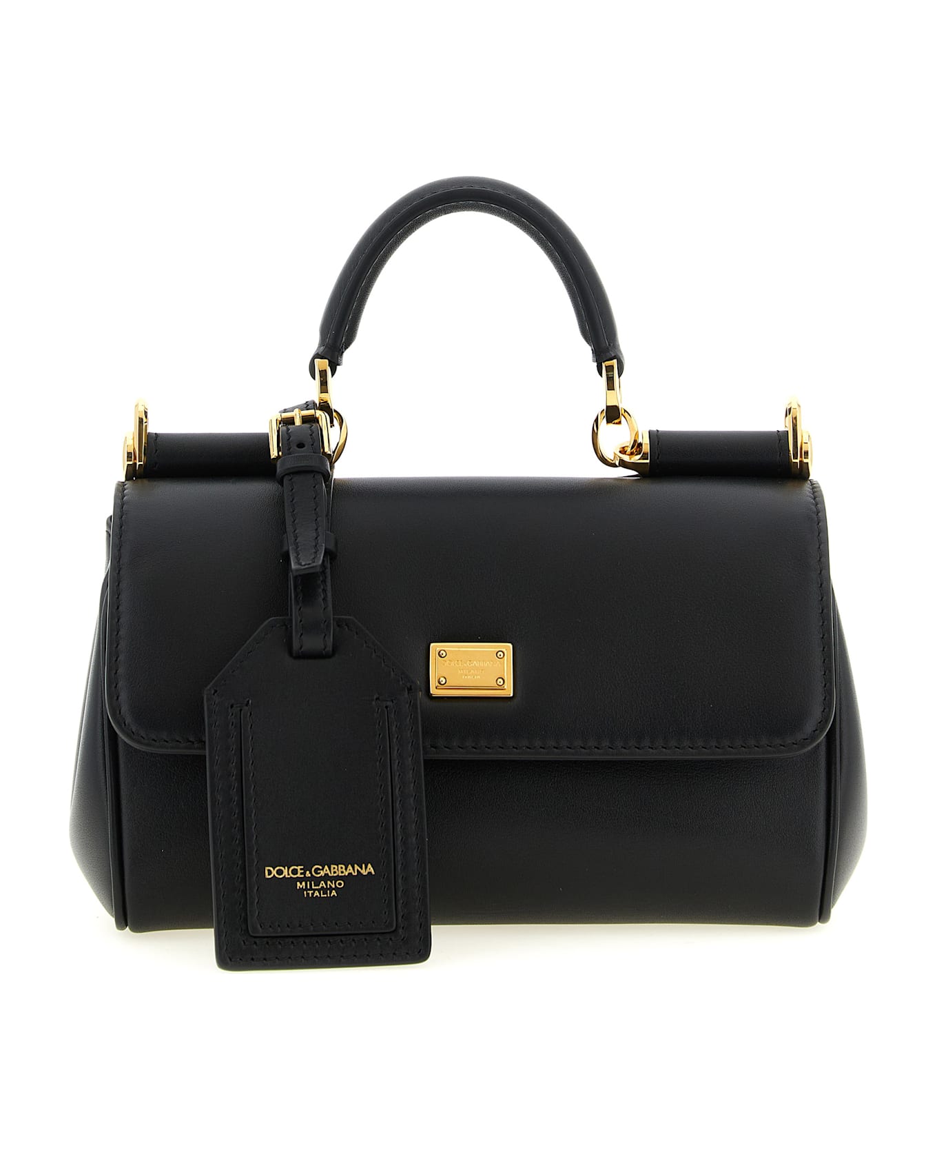 'My Sicily' mini handbag in plongé calf leather, vintage brass galvanic metal details, flap closure with tuck-in mechanism and monogalvanic metal plate with front engraved logo, fixed handle, back embossed logo, adjustable and removable shoulder strap, removable name tag. Composition: 95% calf leather 5% pvc