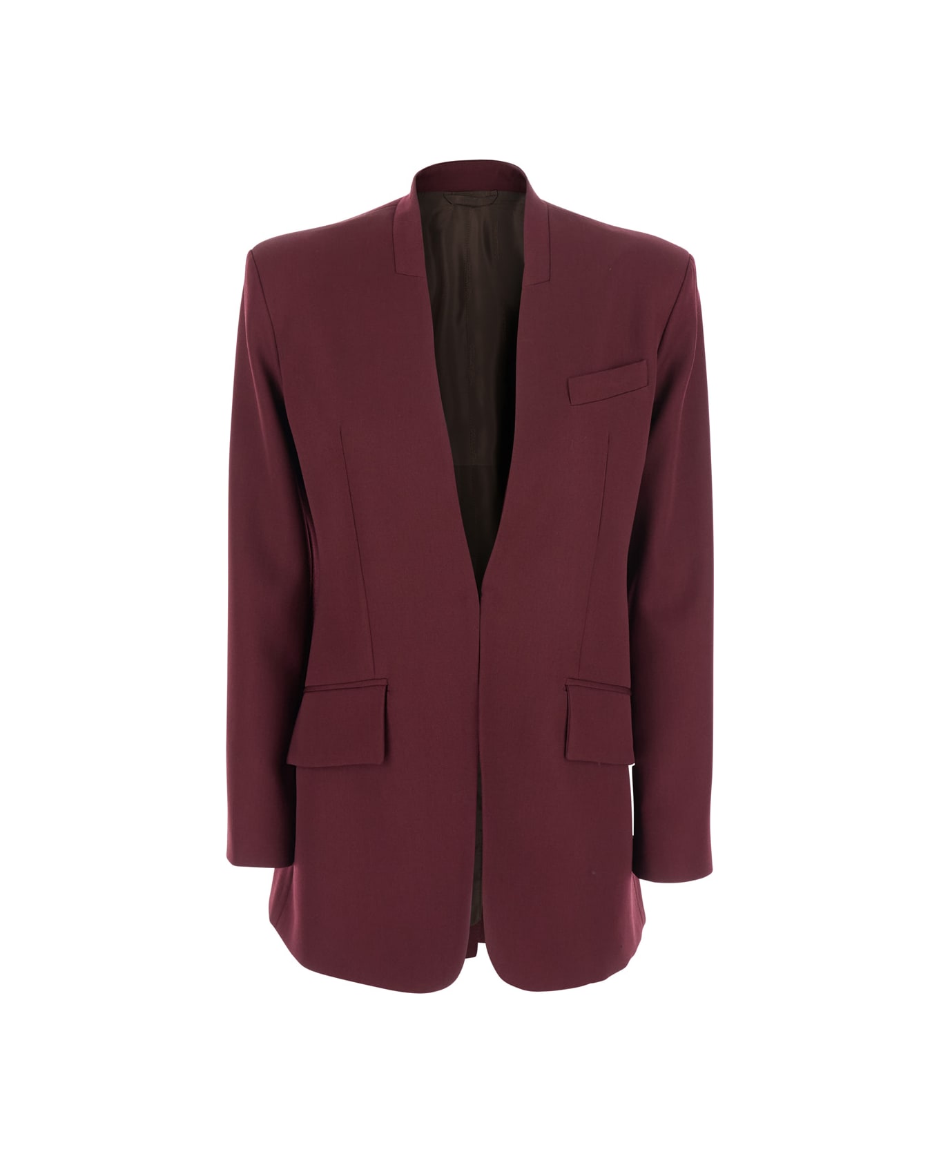 Jacket Bordeaux Deep neckline Long sleeves Shoulder straps Chest pocket Two side pockets Slit at the back Wool Loose fit Composition: