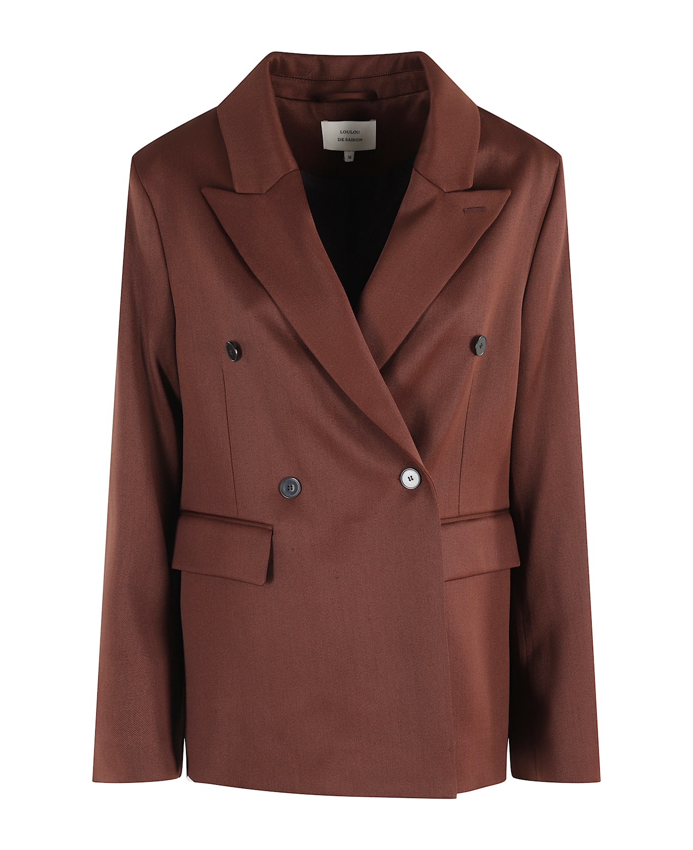 Horn blazer - Loulou De Saison - Burgundy color - Wool twill fabric - Peaked lapel neckline - Side flap pocket - Double-breasted button closure