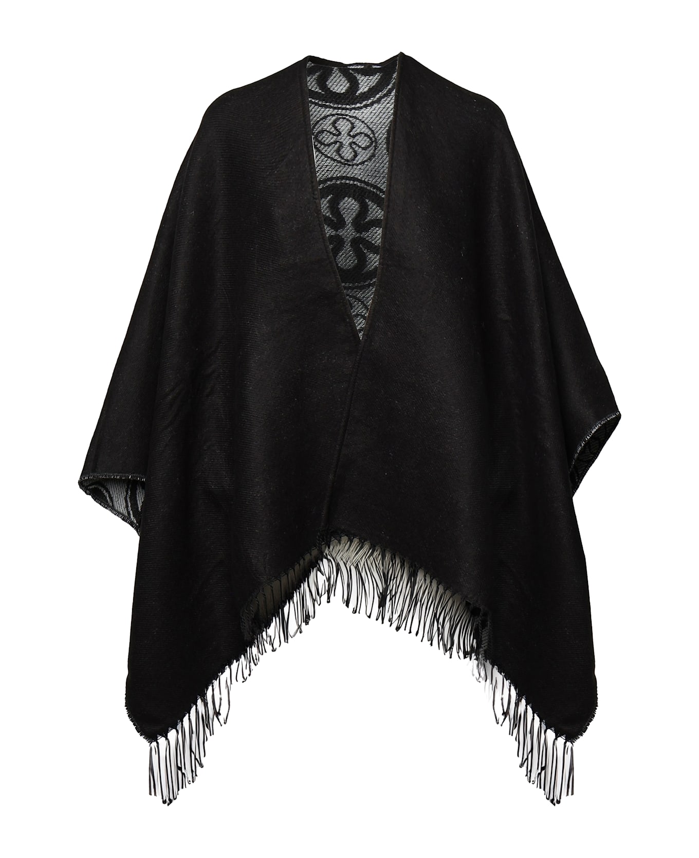 -Reversible jacquard cape -One side is customized with all over V73, the other side is solid color -Fringed trim -Color: Black