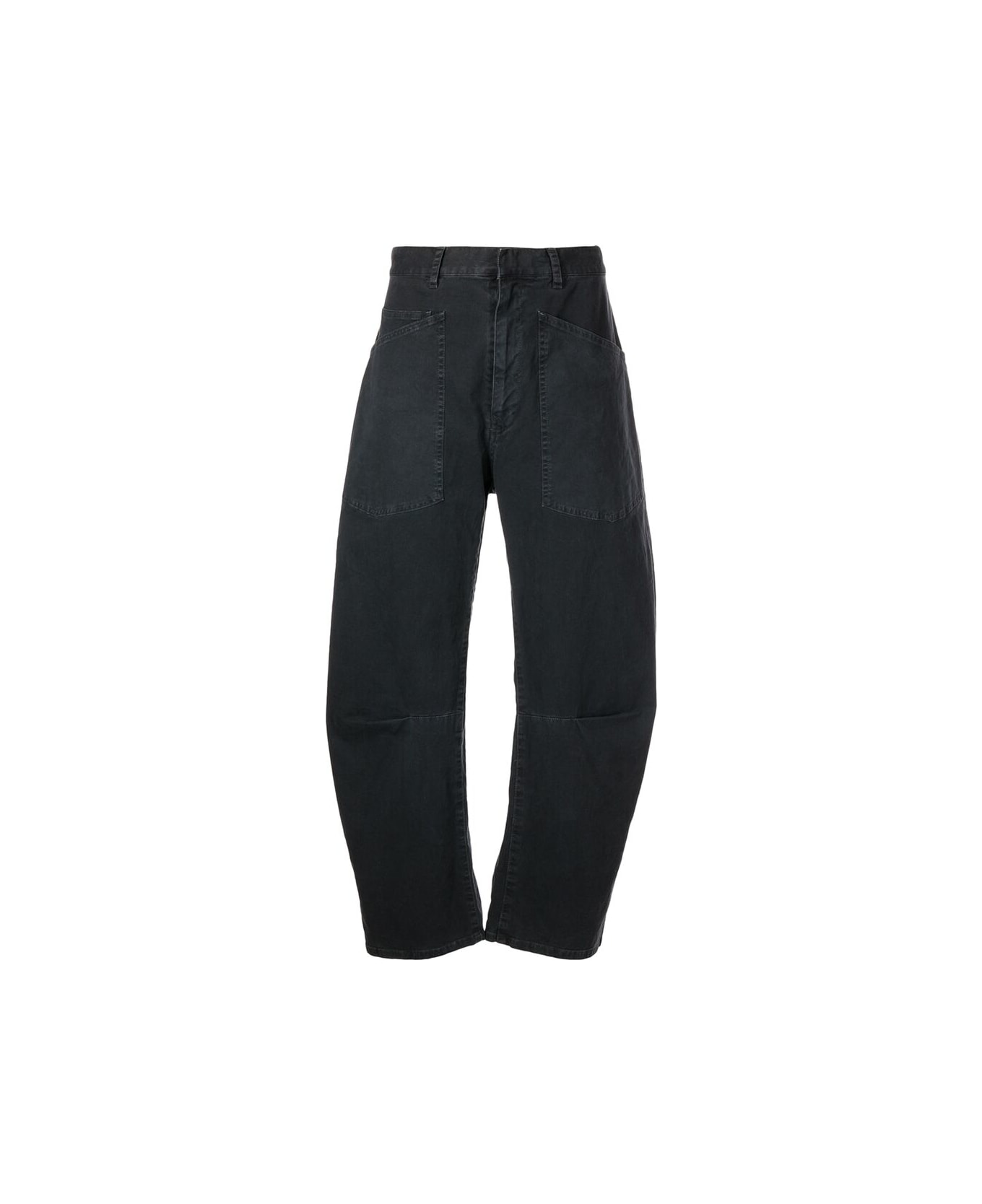 grey cotton-denim curved leg belt loops concealed fly and button fastening five-pockets design