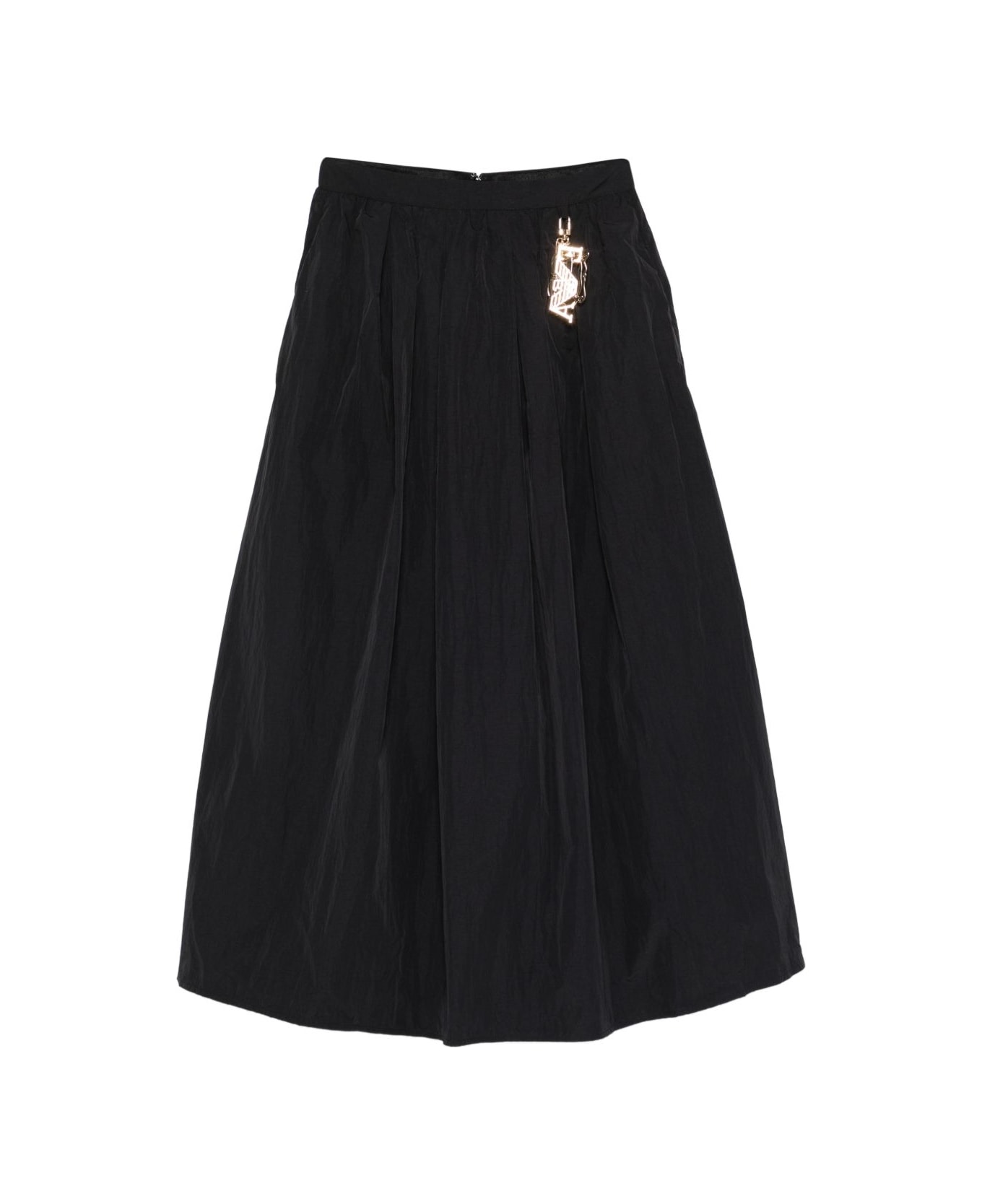 black pleated design charm detail concealed zip fastening high-waisted A-line shape Composition: 100% Polyamide