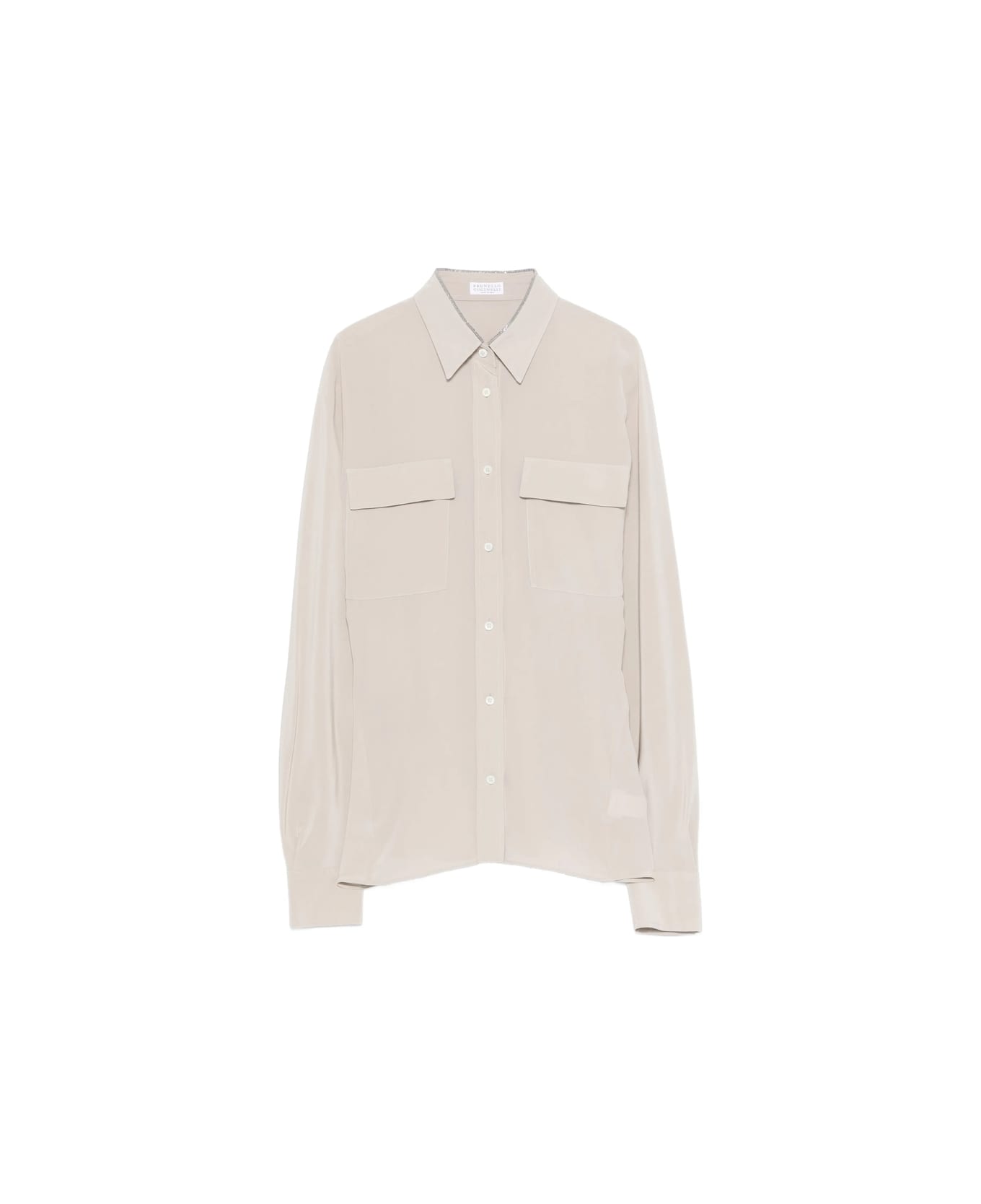 beige front button fastening point collar long sleeves buttoned cuffs two chest flap pockets