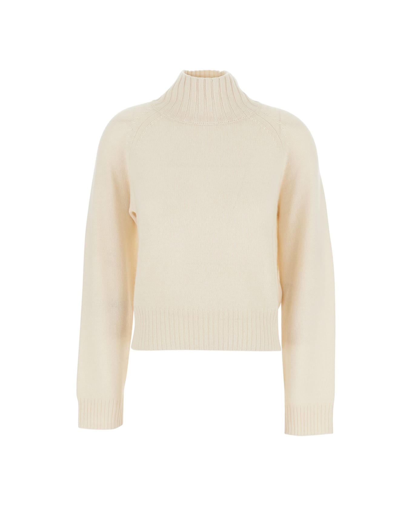 White High Neck Jumper With Ribbed Design In Cashmere Woman
