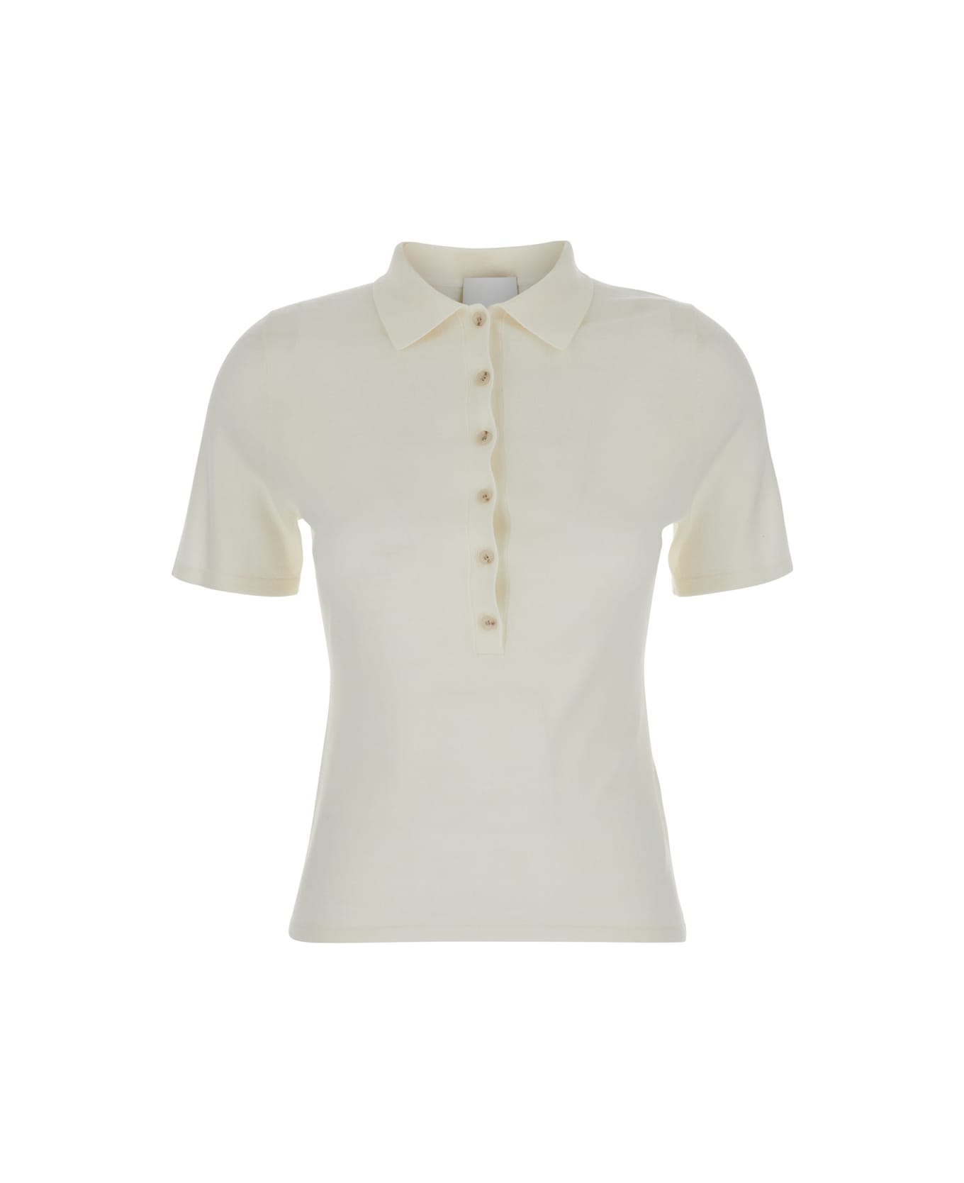 White Sweater With Classic Collar And Button Closure In Wool Woman
