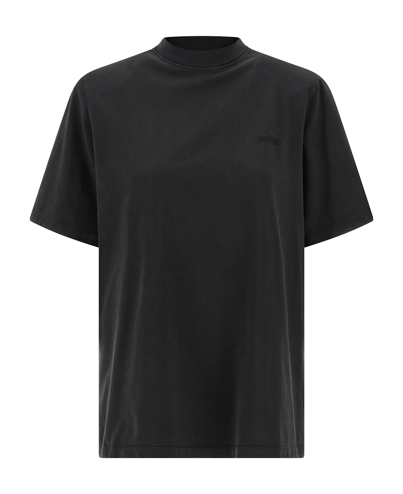 Faded cotton jersey t-shirt with tone-on-tone logo embroidery on the front, removable padded shoulder, short sleeves with dropped shoulders. Composition: 100% cotton