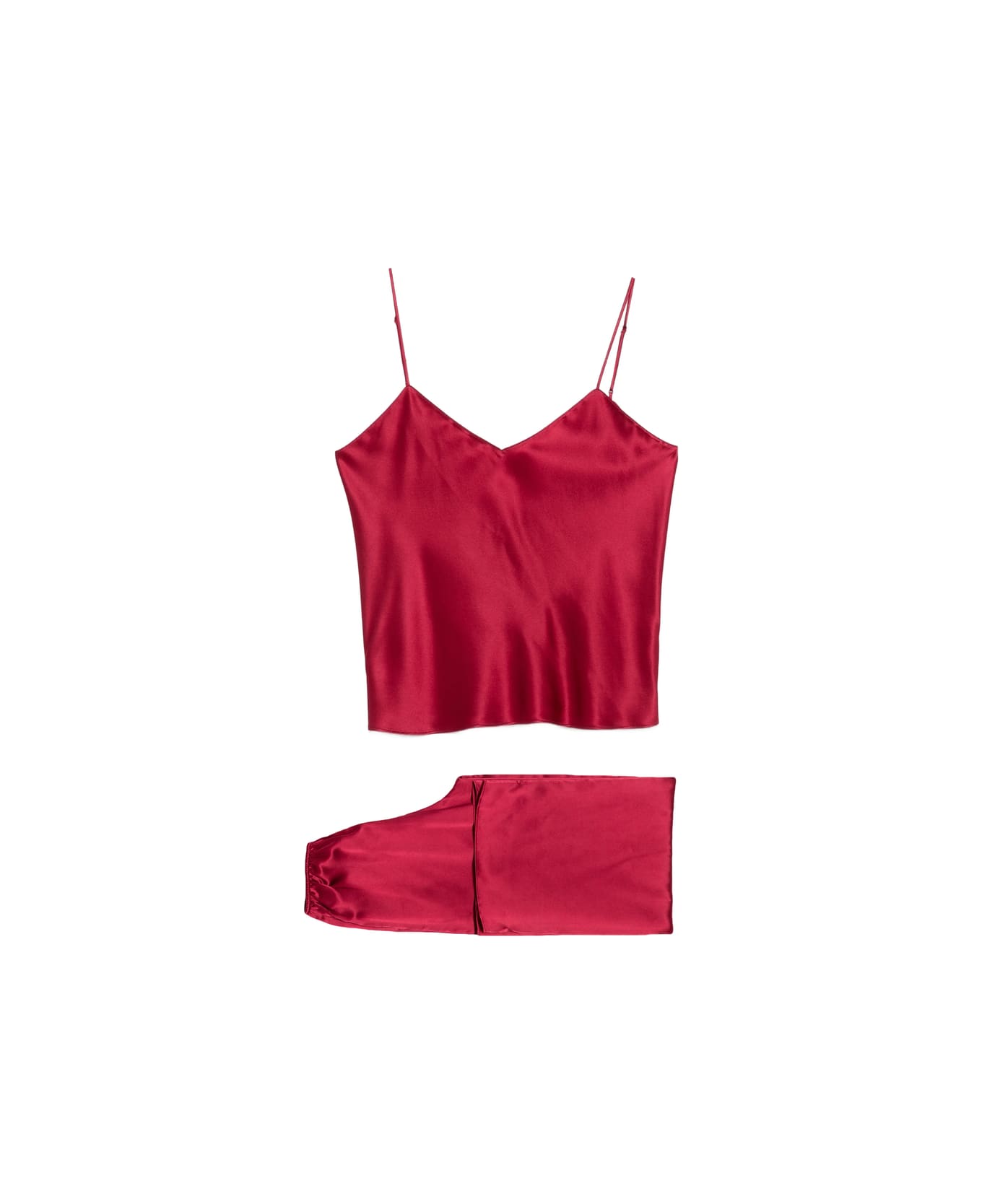 red V-neck spaghetti straps sleeveless tonal stitching straight hem