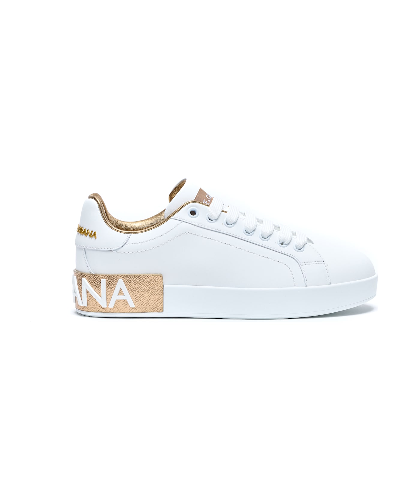 Dolce&Gabbana white Portofino sneakers, leather upper, laces closure, logo on the front and on the back, maxi logo on sole, round toe Composition: 100% Leather, Rubber Sole