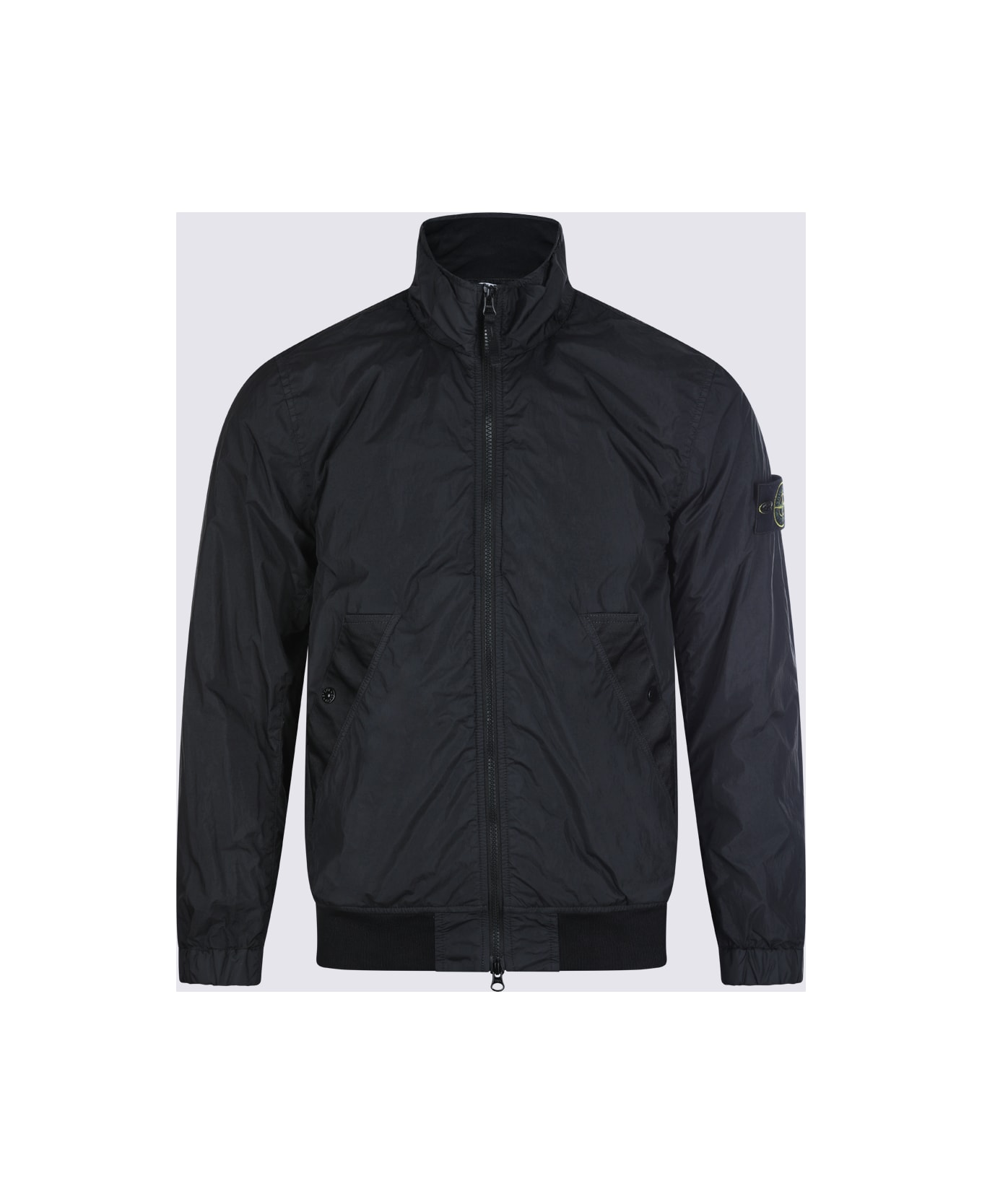 Black casual jacket from Stone Island featuring high neck, zip fastening, long sleeves, lateral logo patch, pockets and regular vestibility. Composition: _, 100% Polyamide