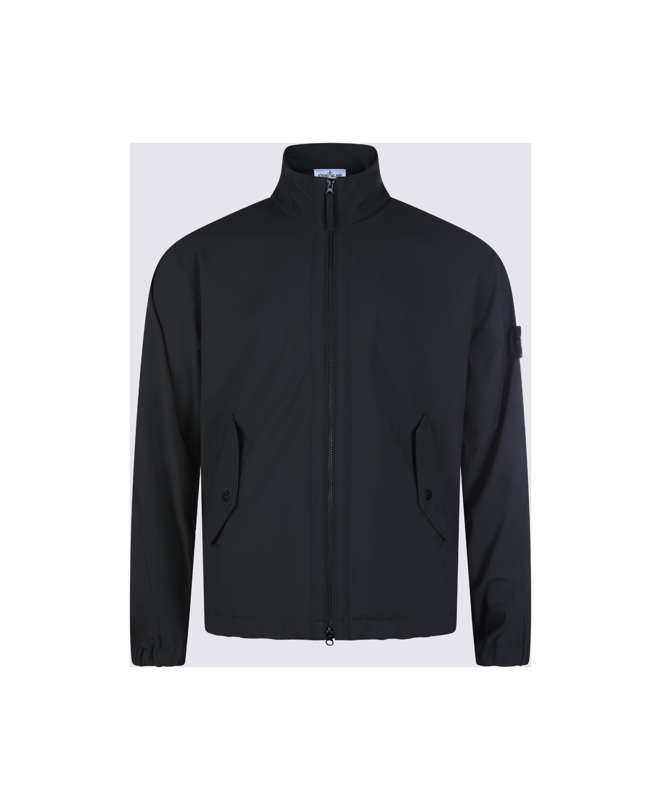 Black casual jacket from Stone Island featuring high colalr, zip fastening, long sleeves, lateral logo patch, pockets and regular vestibility. Composition: _, 92% Polyester, 8% Elastane