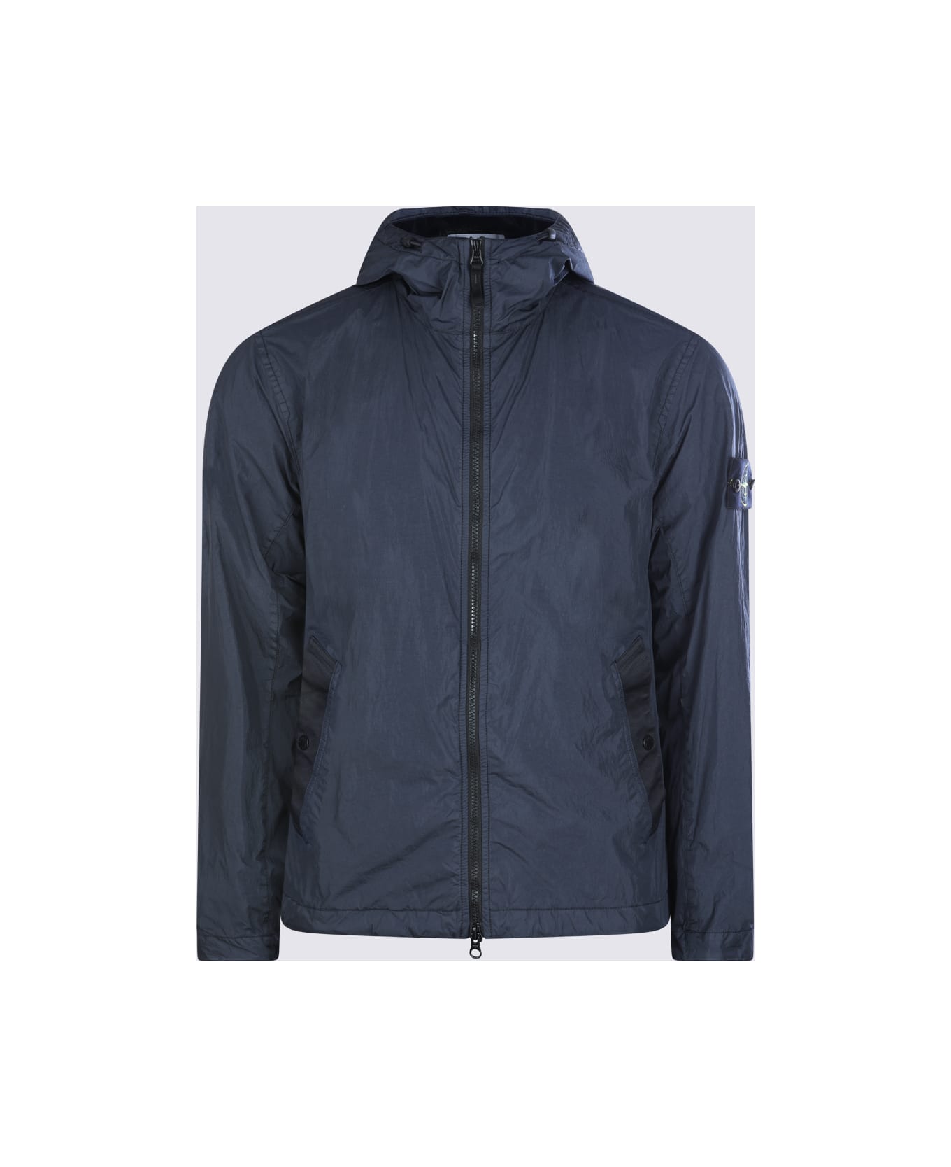 Navy blue casual jacket from Stone Island featuring hood, zip fastening, long sleeves, pockets, lateral logo patch and regular vestibility. Composition: _, 100% Polyamide