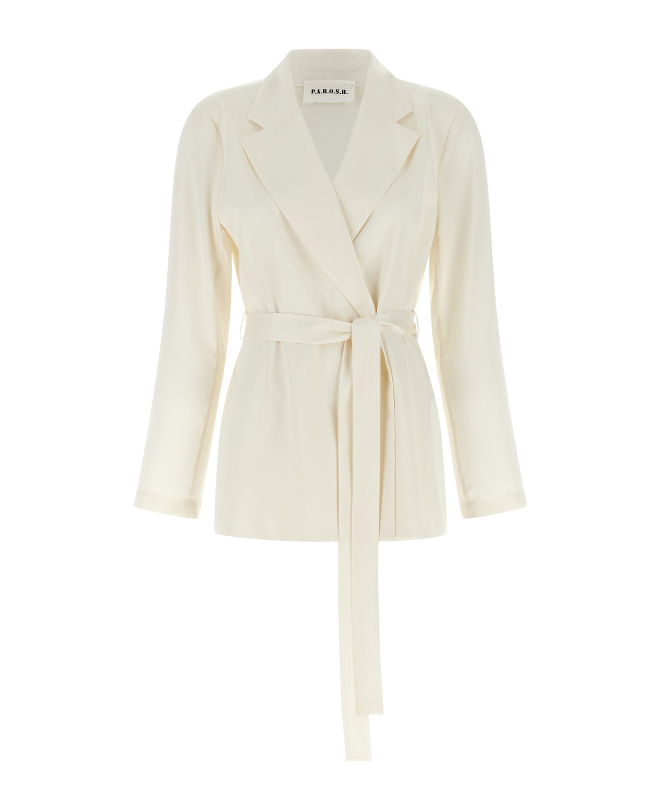'Paky' double-breasted unstructured blazer in fluid fabric with front button closure, mirror lapels, long sleeves, unlined, removable belt. Composition: 100% polyester