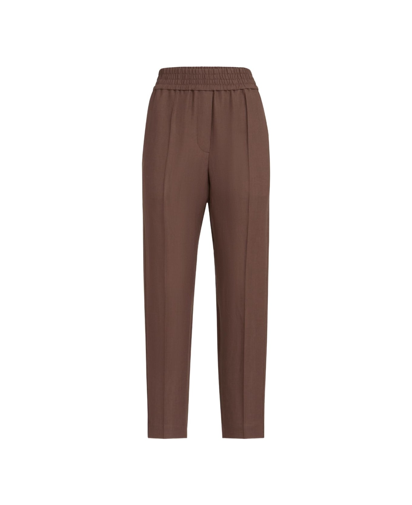 brown elasticated waistband two rear welt pockets front seam detail relaxed fit