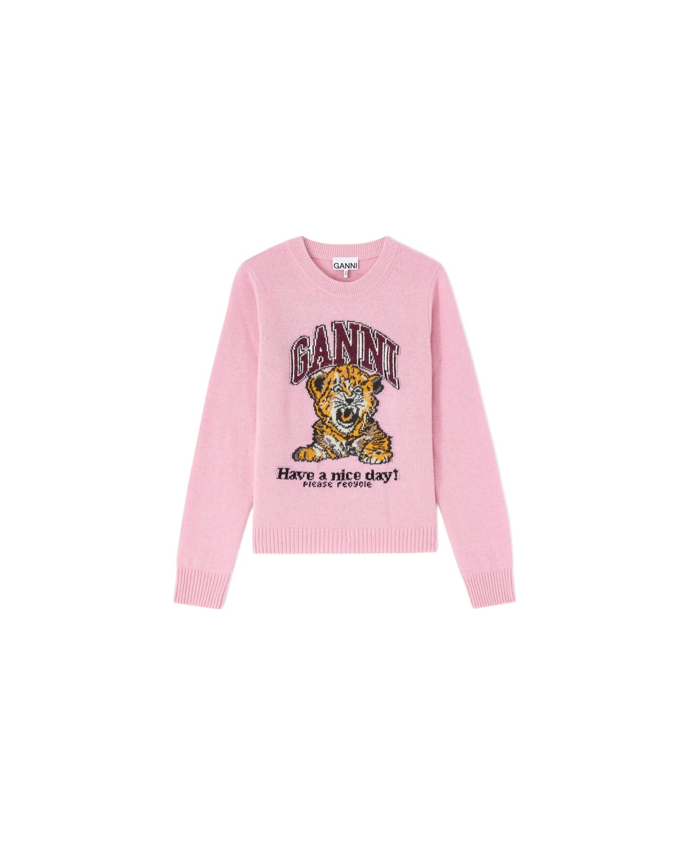light pink graphic print crew neck long sleeves ribbed hem ribbed cuffs