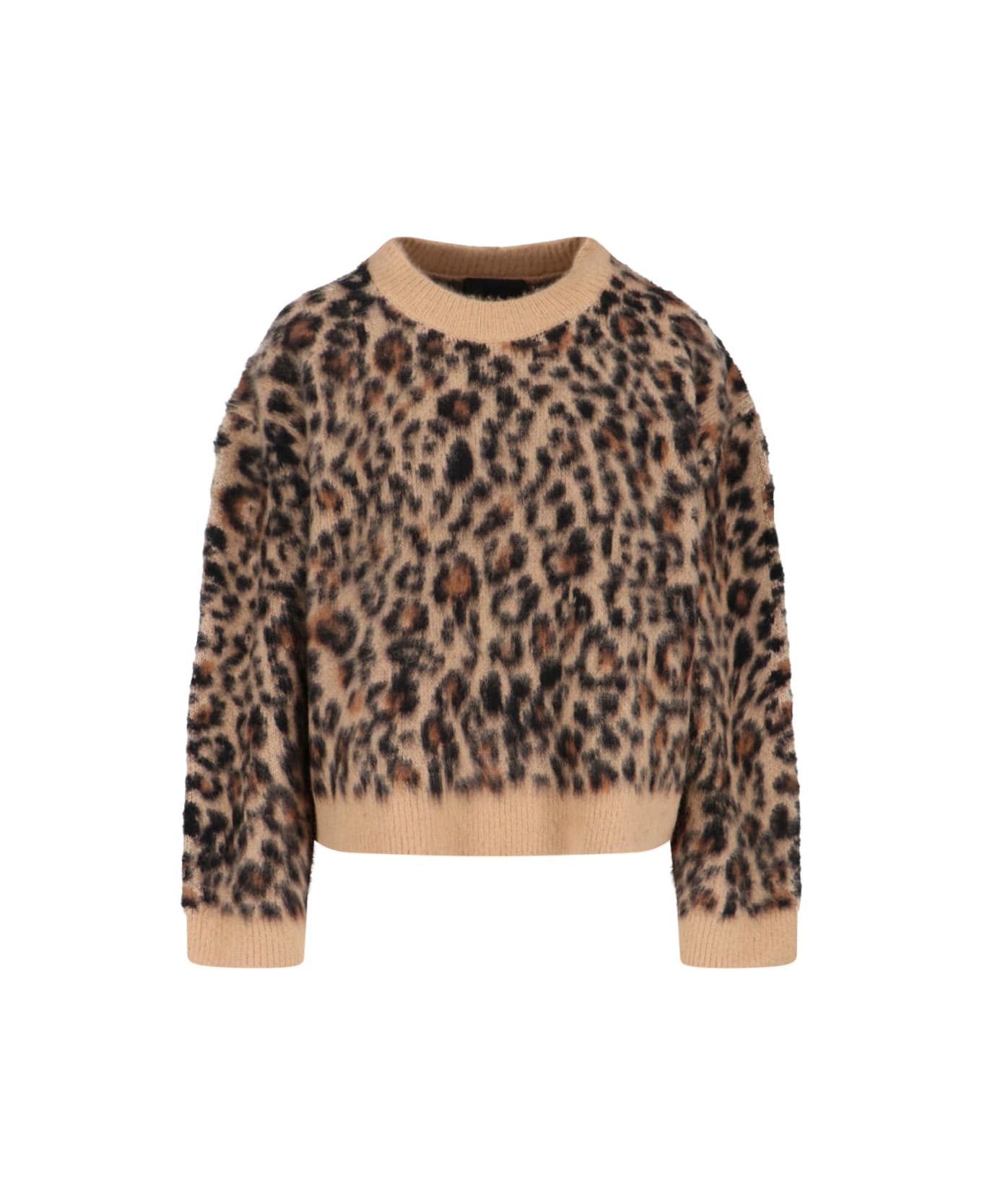 Nili Lotan 'zamira' sweater in brown cashmere and silk blend, animal print, crew neck, long sleeves, straight hem. Composition: 75% Cashmere, 25% Silk