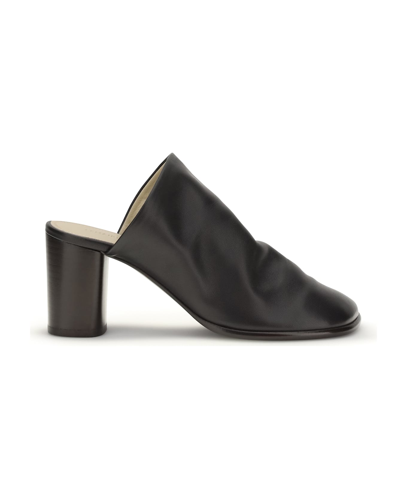 The leather mules by lemaire stand out for their minimalist, refined design. the leather upper and soft silhouette enhance their minimalist, contemporary style, while the slip-on design ensures practicality and comfort. the leather lining and thick heel complete the model, offering a stable and elegant fit, ideal for a sophisticated, timeless look.