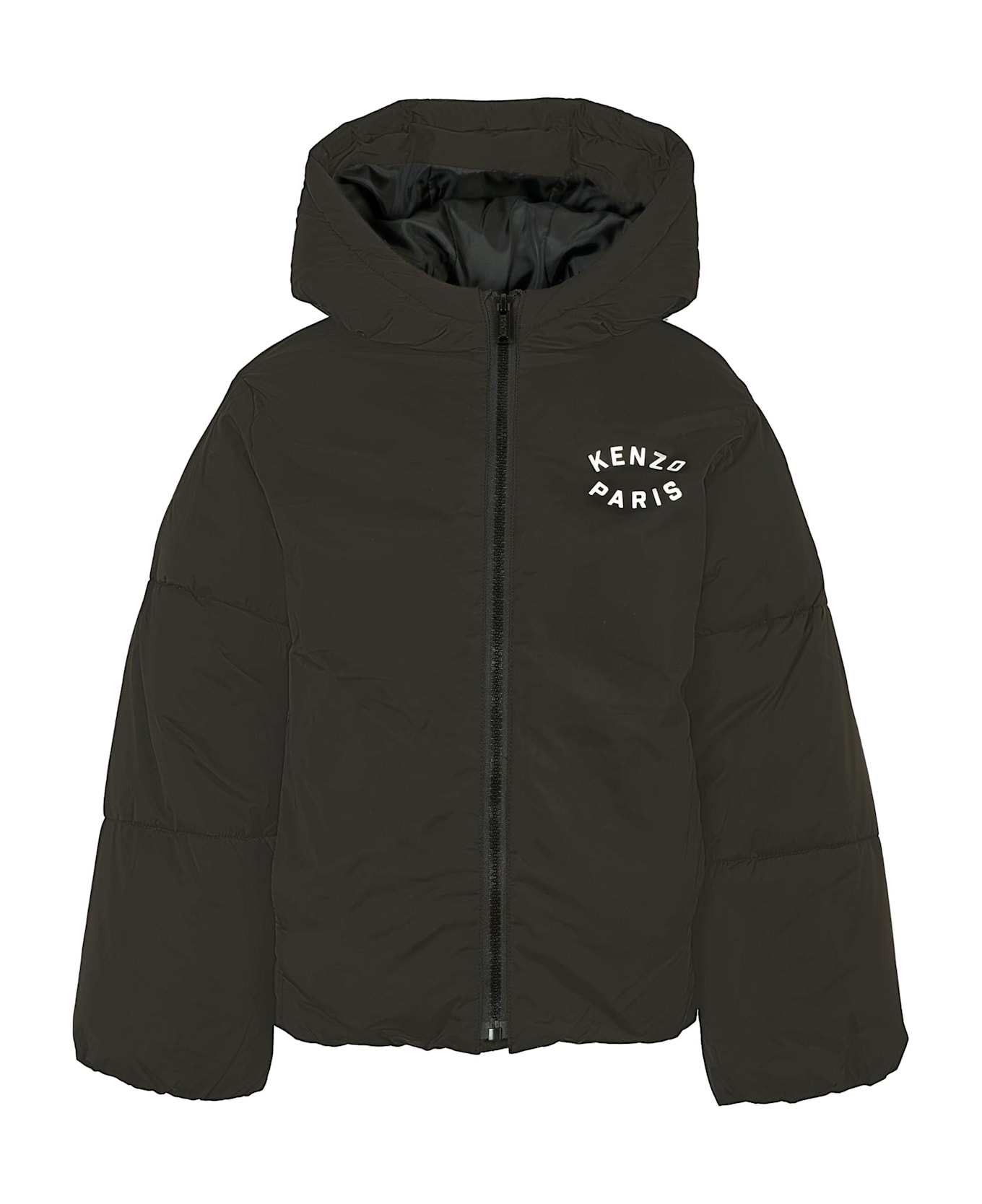 Heavy, waterproof, padded and quilted black down jacket with long sleeves, hood, front zip fastening and side pockets. It is embellished with an embroidered logo on the chest and Lucky Tiger, the iconic tiger, embroidered on the back.
