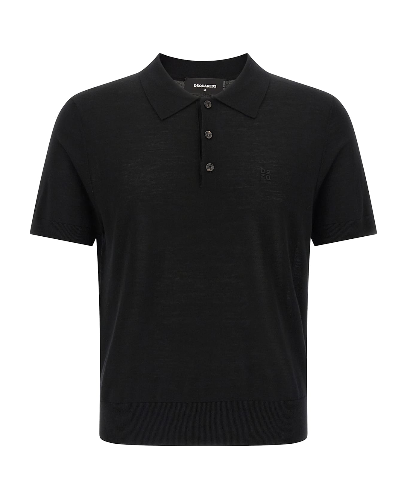 Light wool polo shirt with tone-on-tone logo embroidery on the front, collar and buttons, short sleeves with cuffs.