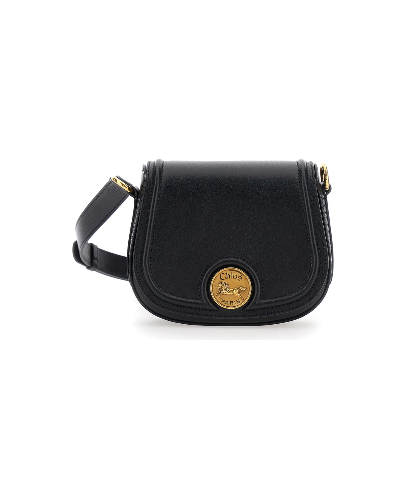 Black Shoulder Bag With Adjustable And Removable Shoulder Strap And Logo Plaque On The Front In Leather Woman