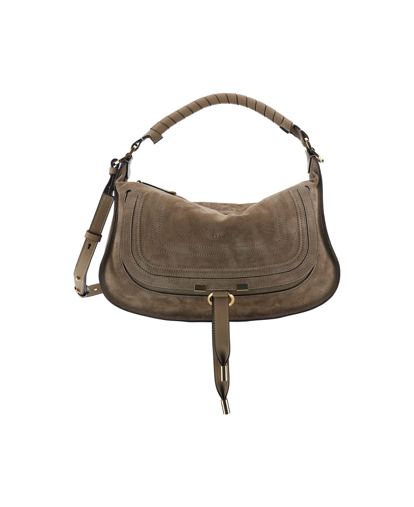 Brown Shoulder Bag With Logo Lettering On The Front In Suede Woman