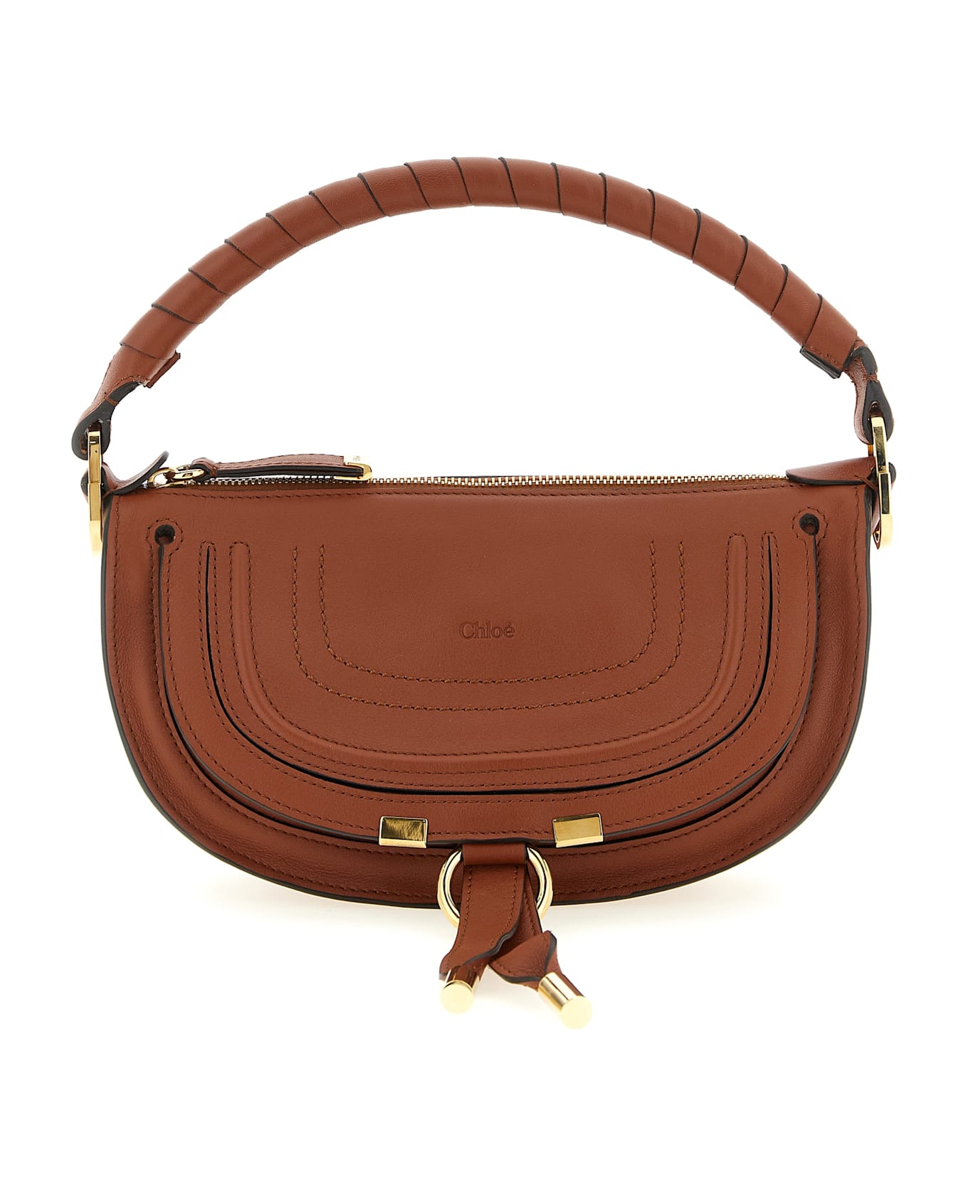 'Marcie' mini shoulder bag in smooth calf leather, saddle stitching, front pocket with flap closure with tassels, fixed hand-wound handle, top zip closure, adjustable and removable shoulder strap. SUSTAINABLE: To make this product, Chloé worked with tanneries with Leather Working Group (LWG) certification, which is based on water and energy consumption and chemical, solid waste and slurry management policy.