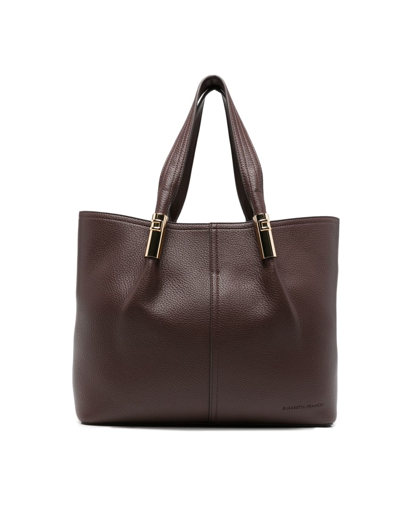 brown two top handles gold-tone clasp detail internal pouch structured shape