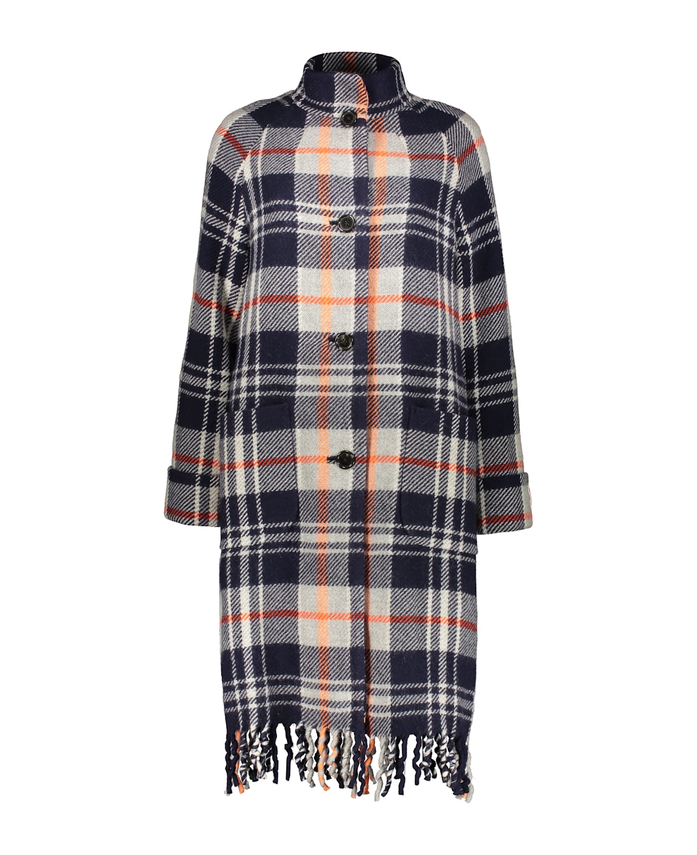 Check motif stand up collar two front pockets fringed hemline roll-up cuffs 100% wool, 40% cuprammonium rayon, 60% acetate Composition: 100% % Wool, 40% % Cuprammonium Rayon, 60% % Acetate